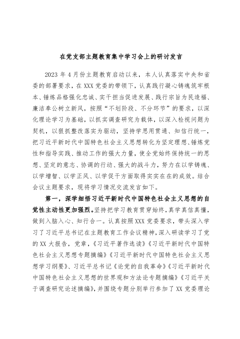 在XX党委(党组)5月主题教育暨《论党的自我革命》专题学习会上的发言