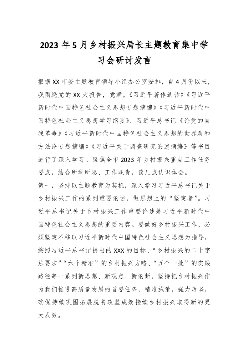 2023年5月乡村振兴局长主题教育集中学习会研讨发言
