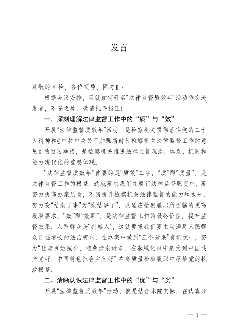 / 关于法律监督质效的发言