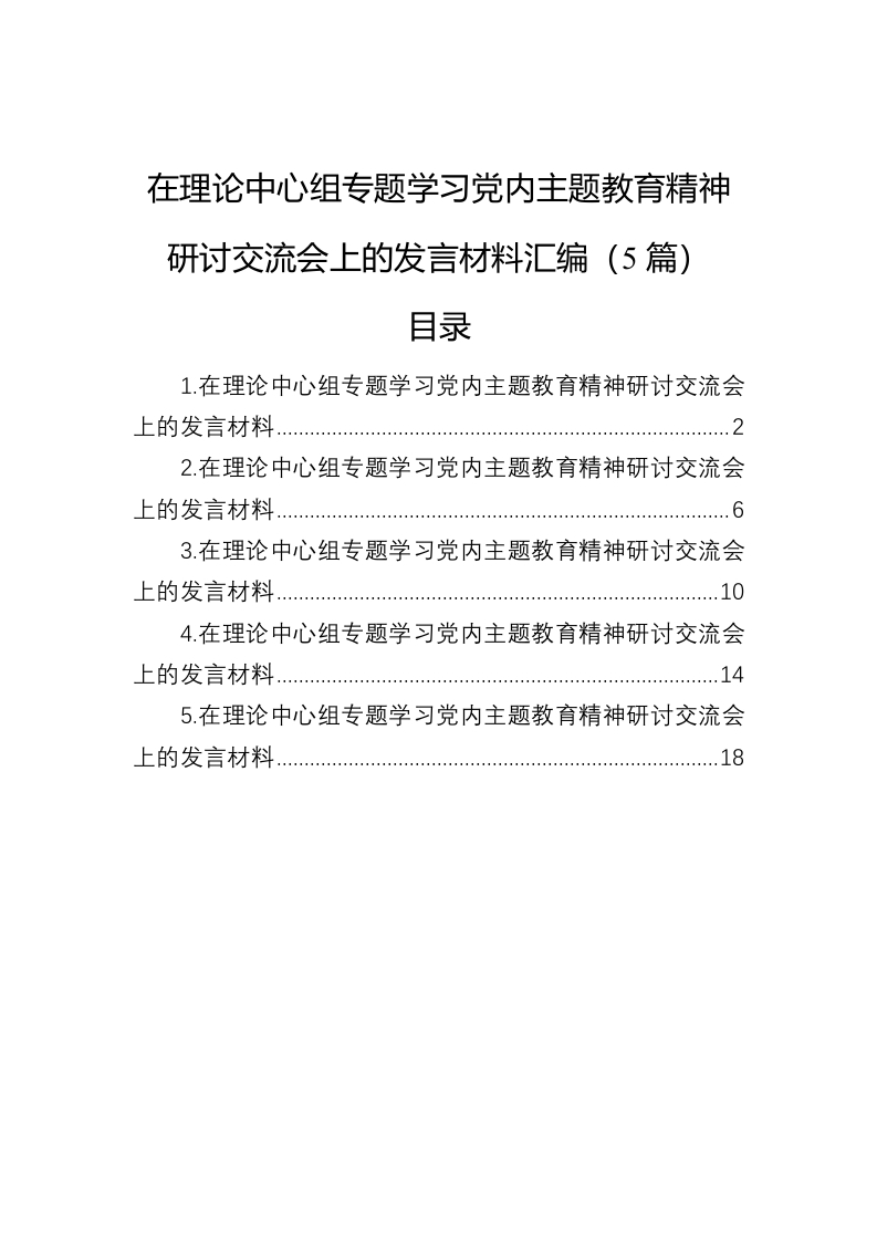 / 在理论中心组专题学习党内主题教育精神研讨交流会上的发言材料汇编(5篇)