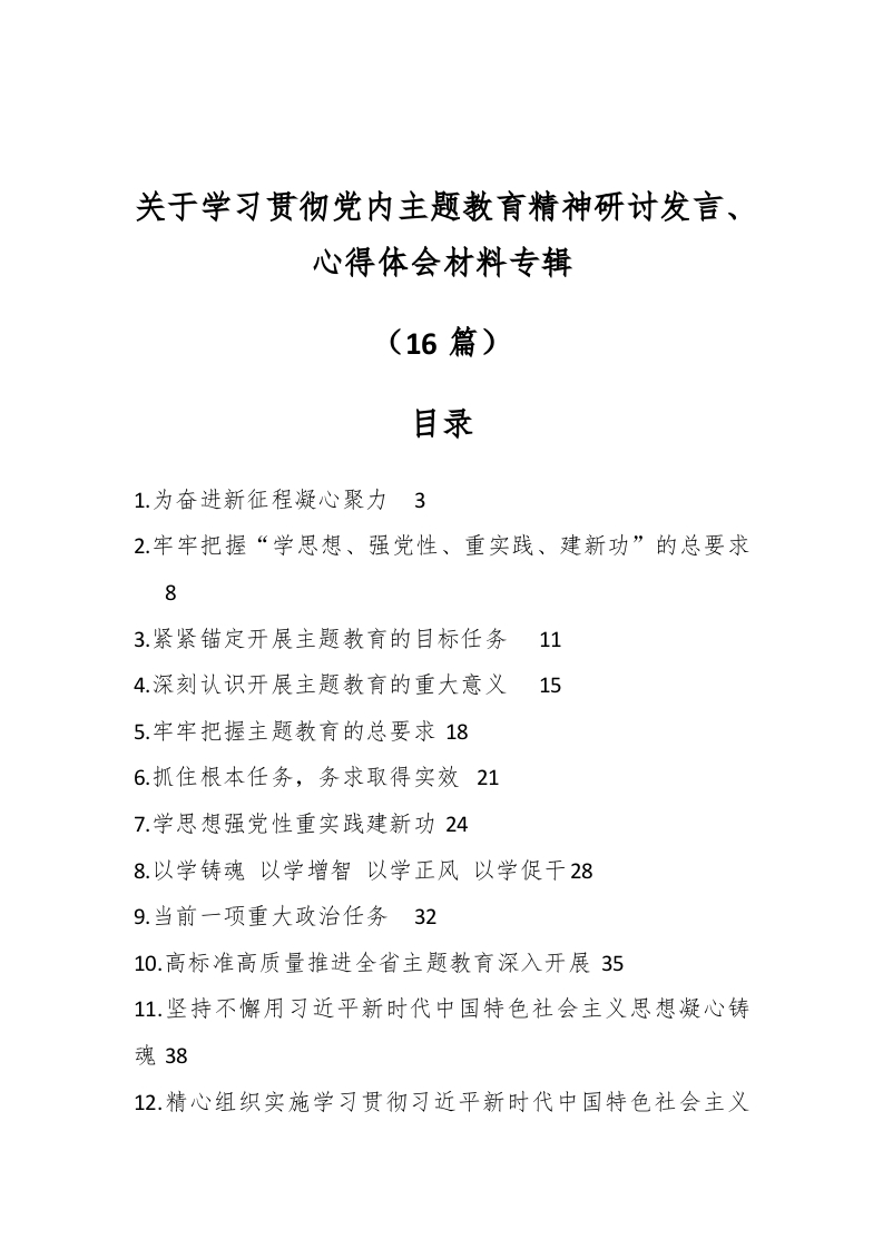 (16篇)关于学习贯彻党内主题教育精神研讨发言、心得体会材料专辑