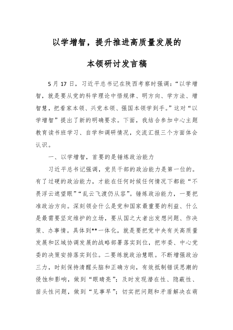 / 以学增智,提升推进高质量发展的本领研讨发言稿