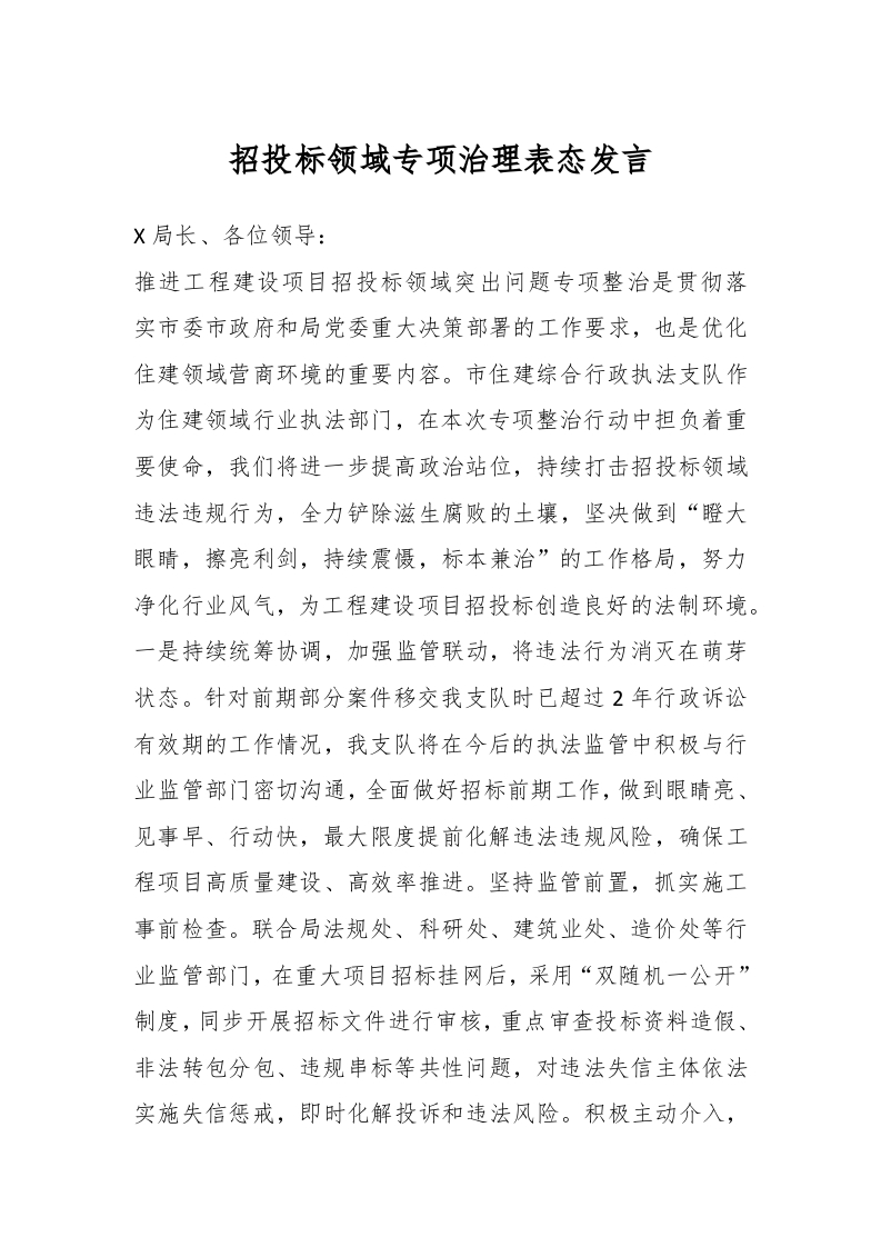 / 招投标领域专项治理表态发言
