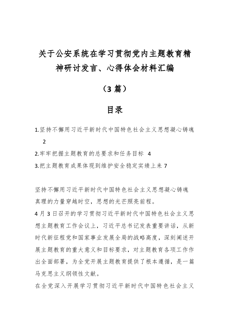 (3篇)公安系统关于学习贯彻党内主题教育精神研讨发言、心得体会材料专辑