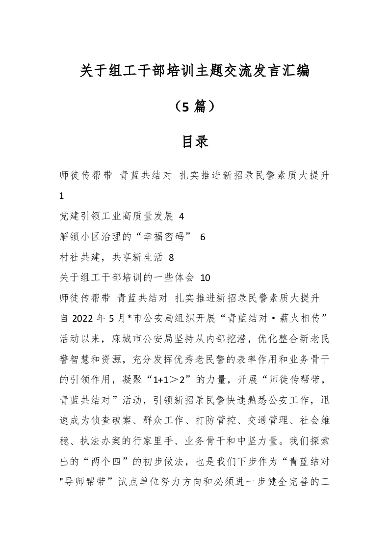 / (5篇)关于组工干部培训主题交流发言汇编