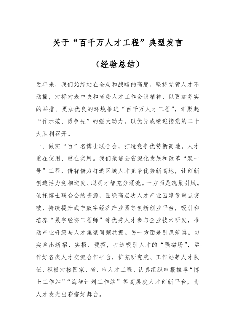 / 关于“百千万人才工程”典型发言(经验总结)