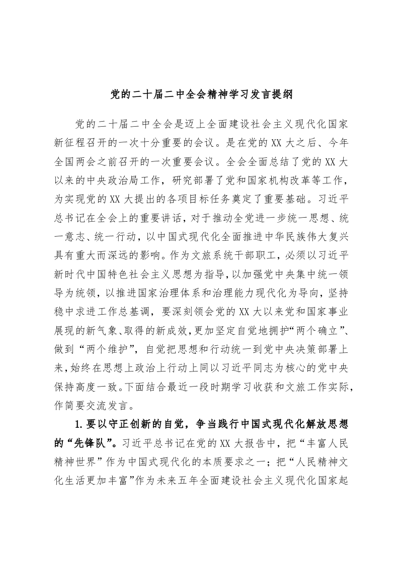 / 党的二十届二中全会精神学习发言提纲