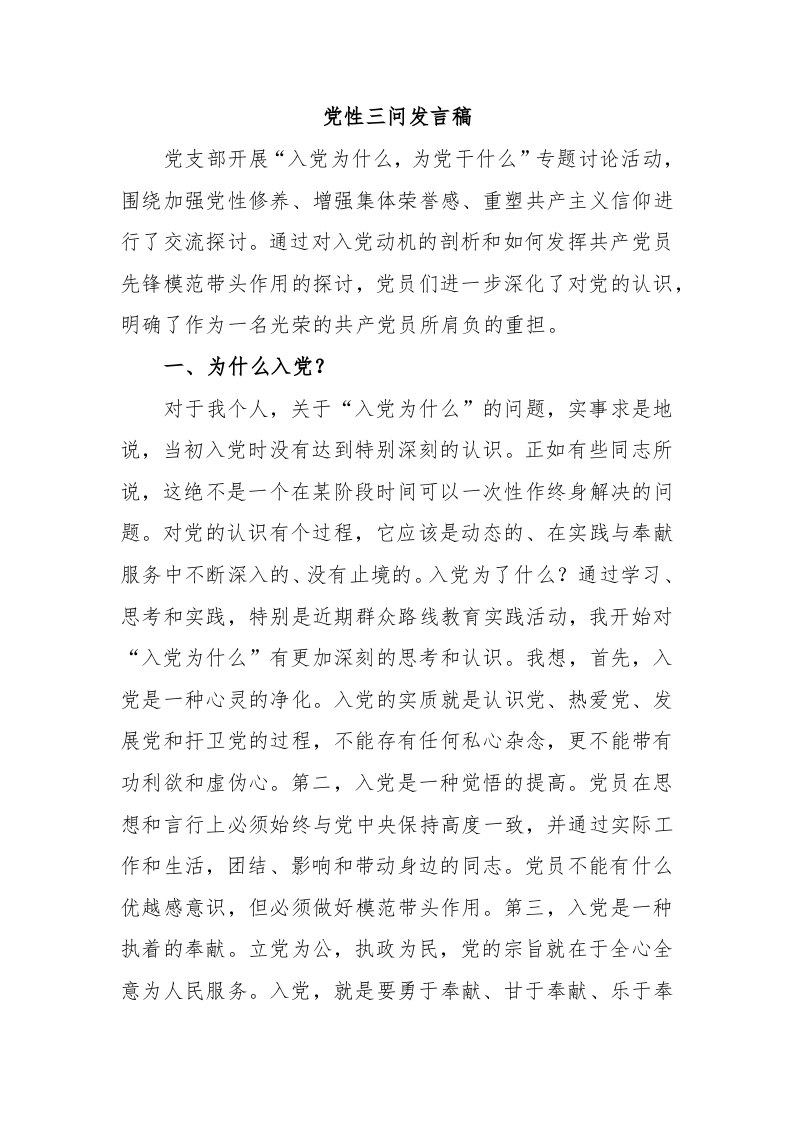 / 党性三问发言稿