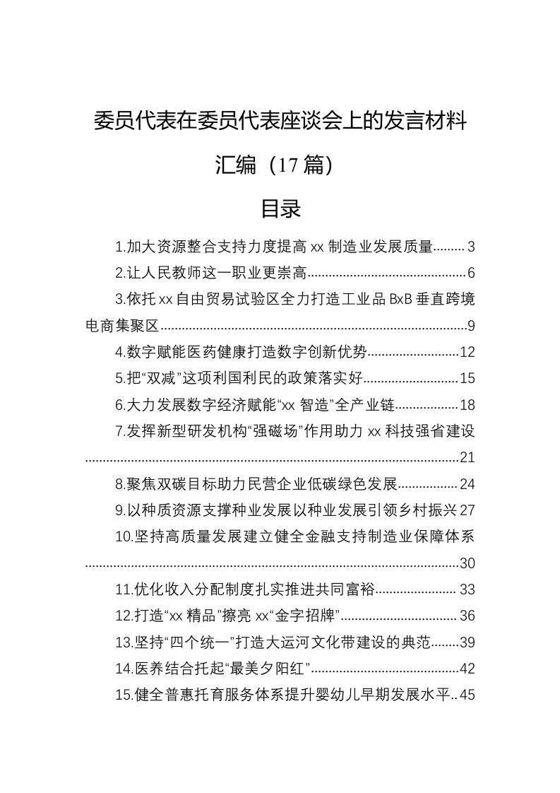 / 委员代表在委员代表座谈会上的发言材料汇编(17篇)