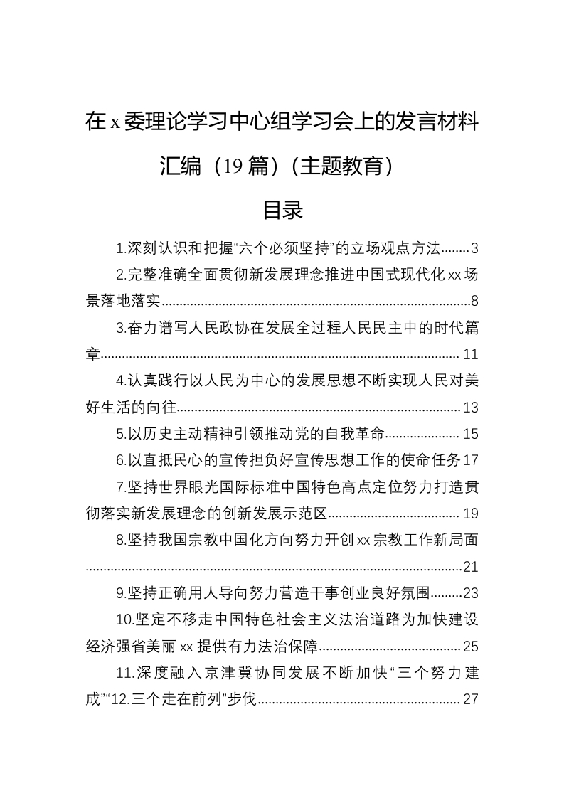 / 在x委理论学习中心组学习会上的发言材料汇编(19篇)(主题教育)