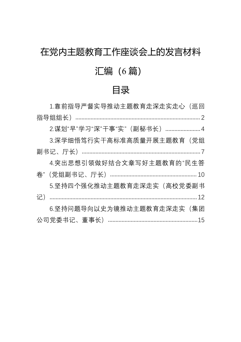 / 在党内主题教育工作座谈会上的发言材料汇编(6篇)