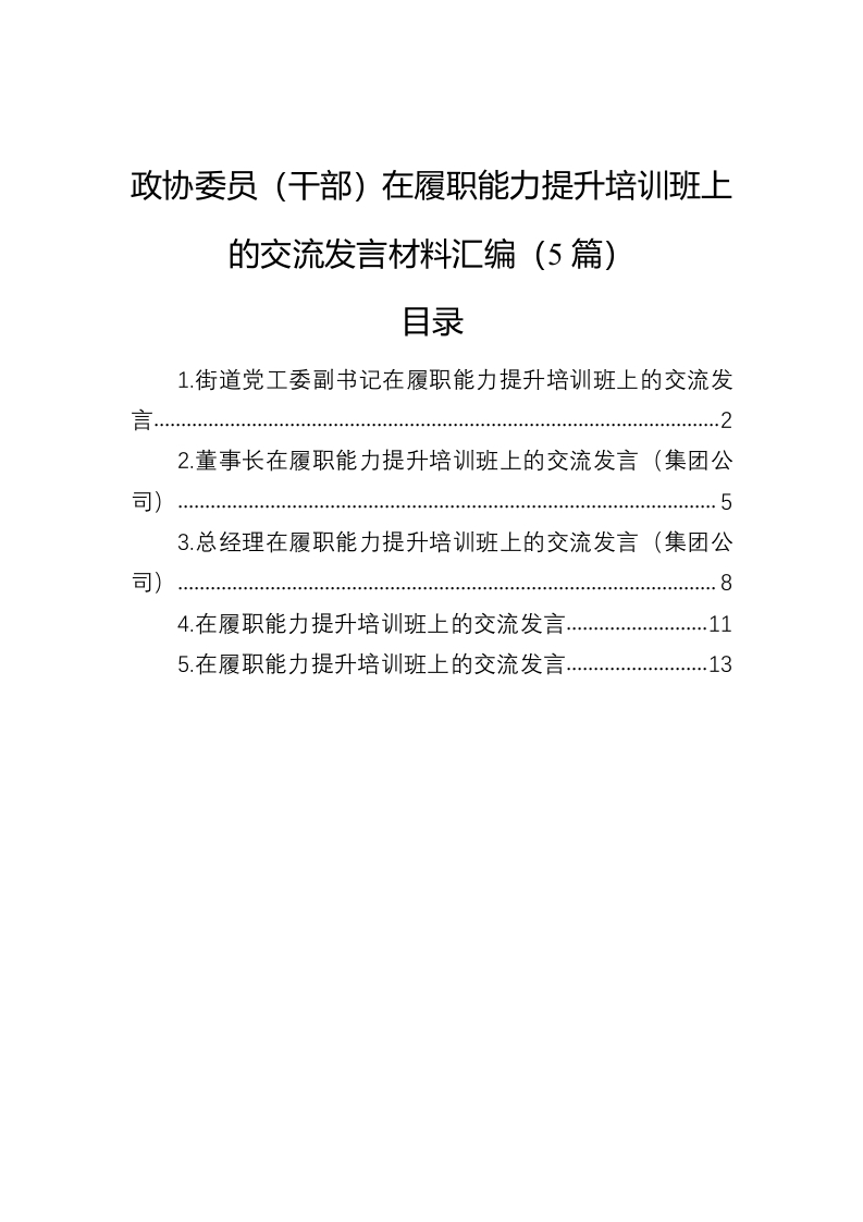 / 政协委员(干部)在履职能力提升培训班上的交流发言材料汇编(5篇)