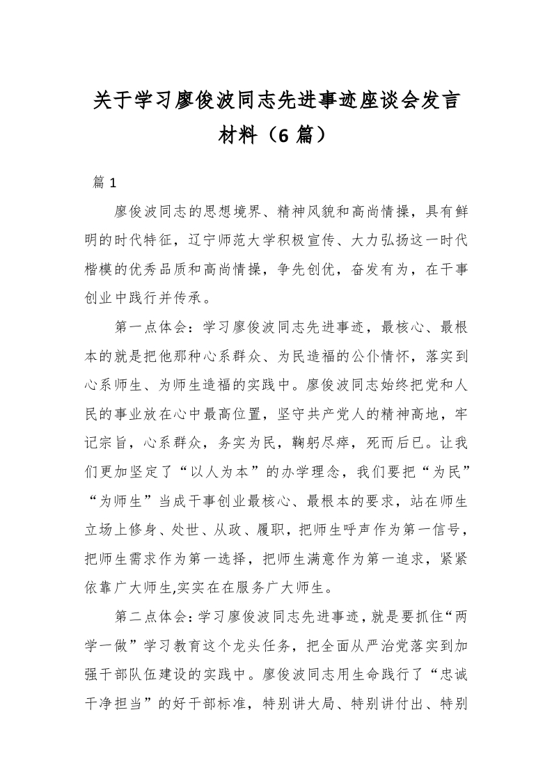 / (6篇)关于学习廖俊波同志先进事迹座谈会发言材料