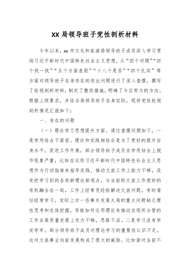 / XX局领导班子党性剖析材料