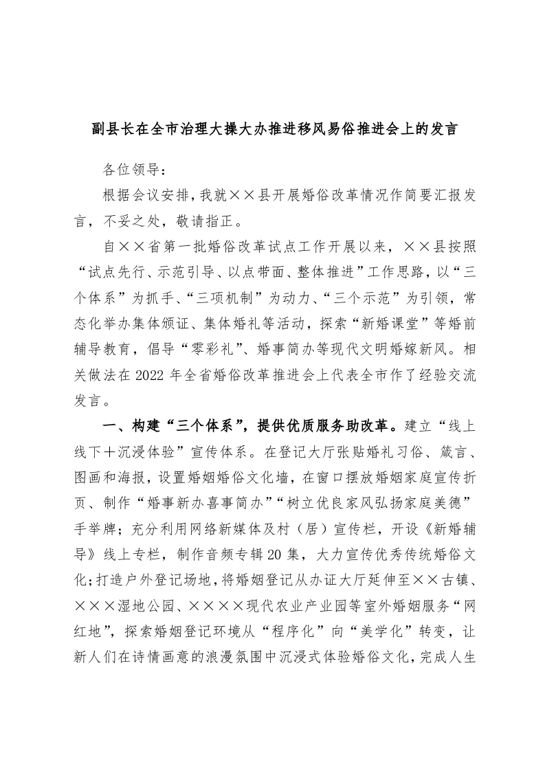 / 副县长在全市治理大操大办推进移风易俗推进会上的发言