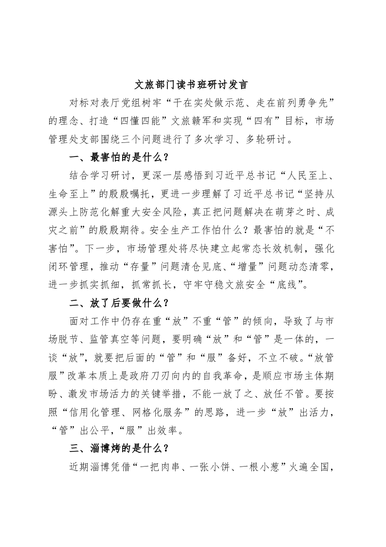 / 文旅部门读书班研讨发言