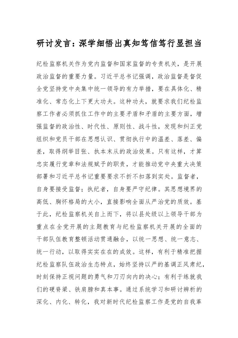 研讨发言:深学细悟出真知笃信笃行显担当