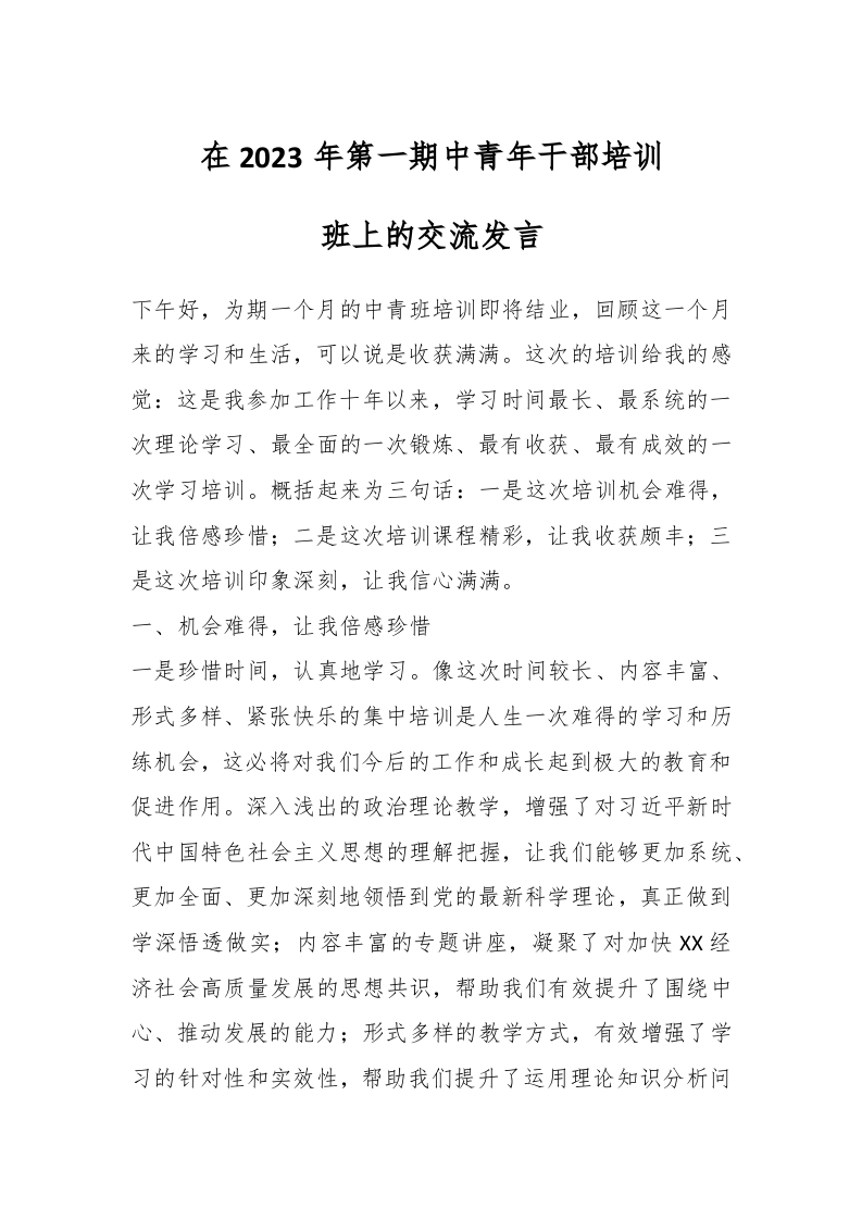 / 在2023年第一期中青年干部培训班上的交流发言