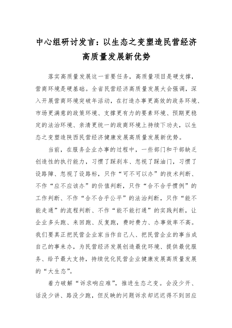 / 中心组研讨发言:以生态之变塑造民营经济高质量发展新优势