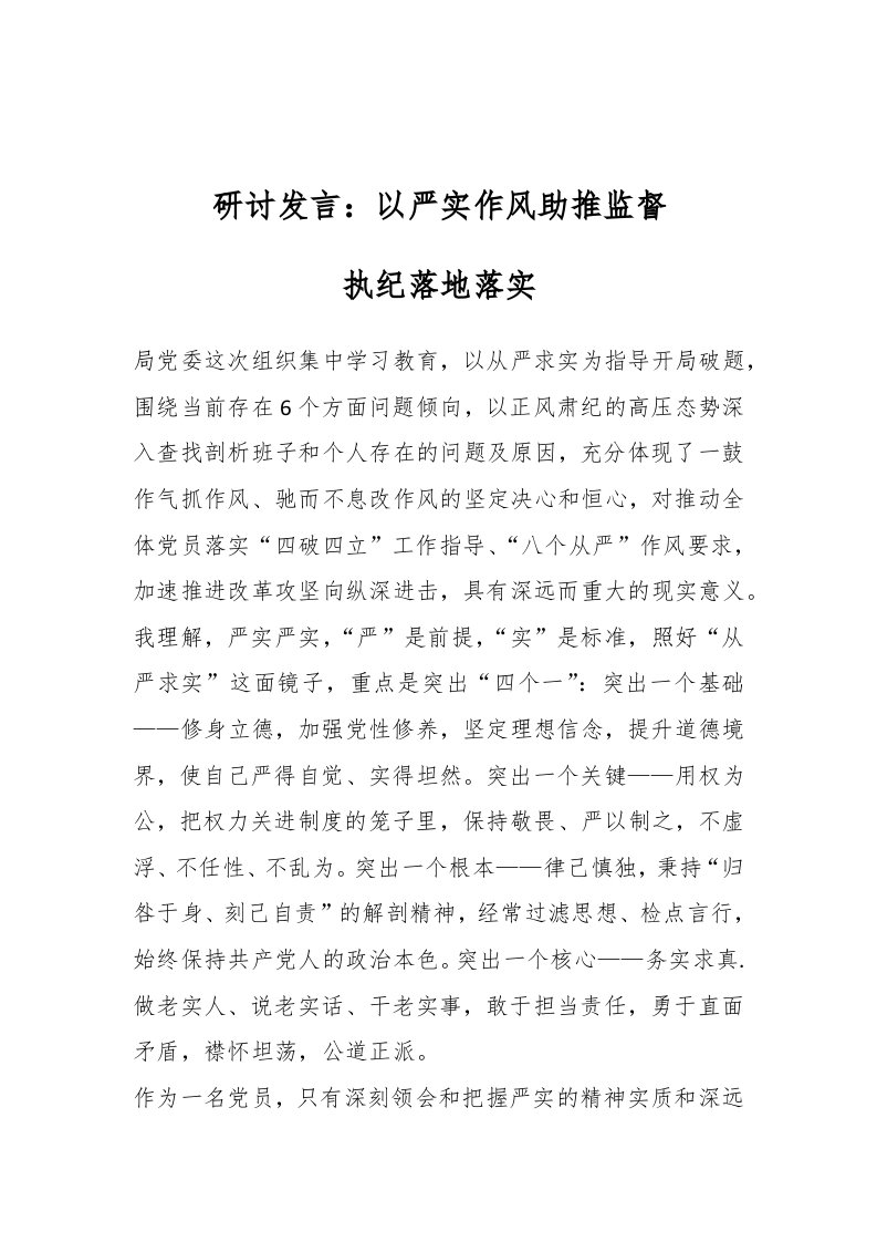 / 研讨发言:以严实作风助推监督执纪落地落实