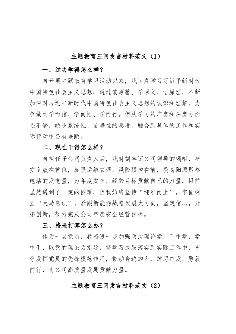 / (10篇)主题教育三问研讨发言材料集团公司企业过去学得怎么样现在干得怎么样将来打算怎么办