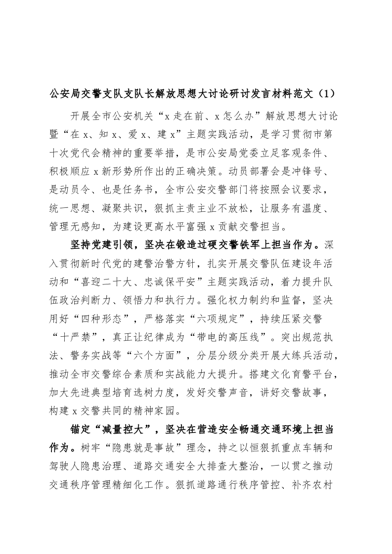 / (2篇)交警解放思想研讨发言材料(学习心得体会)