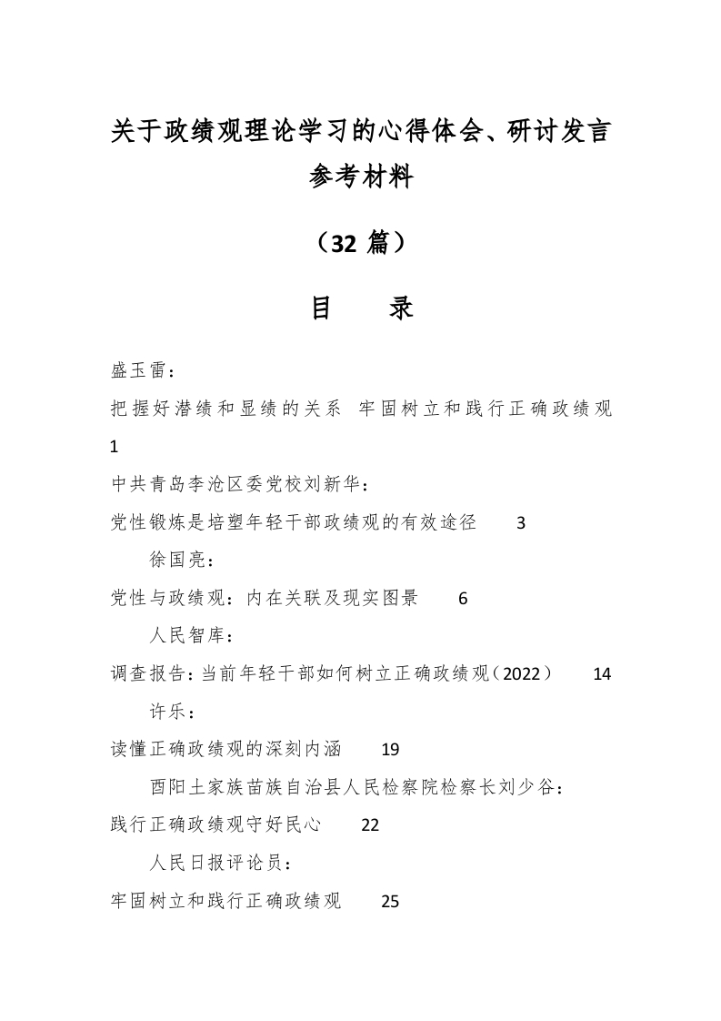 / (31篇)关于政绩观理论学习的心得体会、研讨发言参考材料