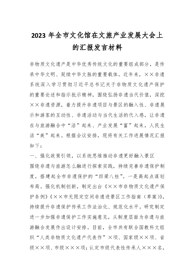 / 2023年全市文化馆在文旅产业发展大会上的汇报发言材料