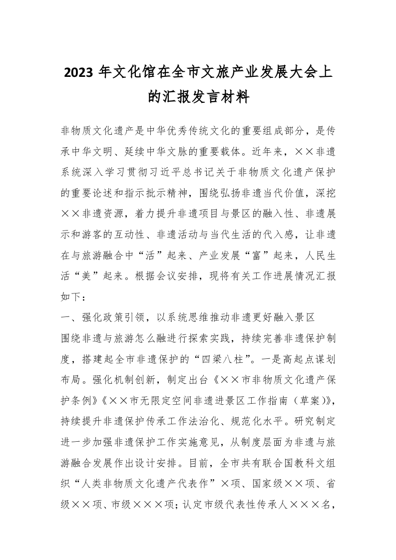 / 2023年文化馆在全市文旅产业发展大会上的汇报发言材料