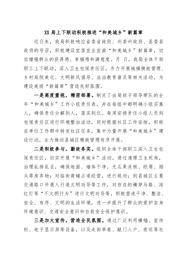 / XX局上下联动积极推进“和美城乡”新篇章
