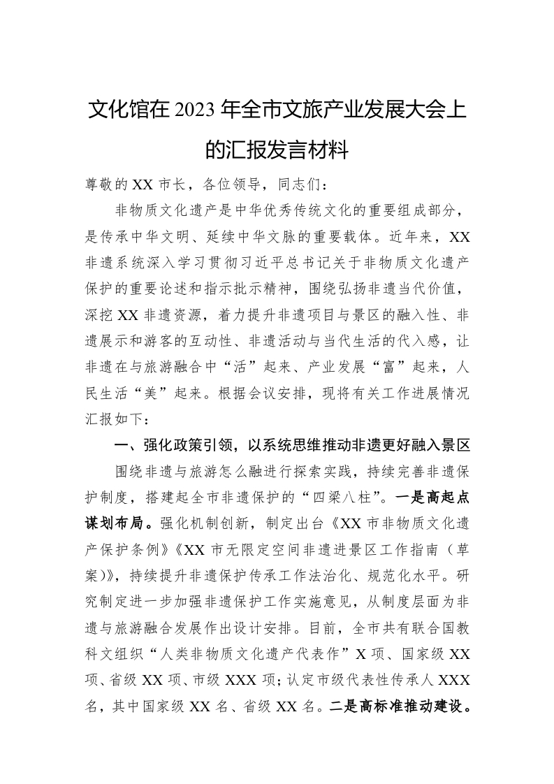 / 文化馆在2023年全市文旅产业发展大会上的汇报发言材料