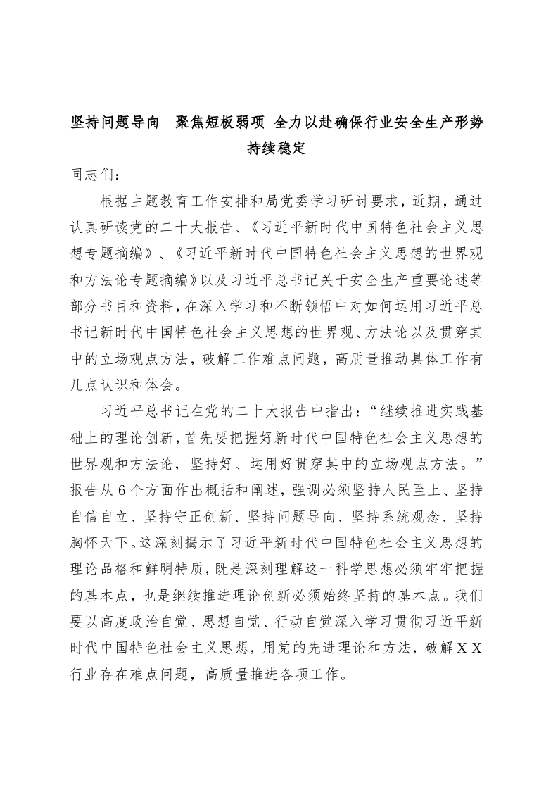 / 学习贯彻习近平新时代中国特色社会主义思想主题教育交流研讨发言提纲
