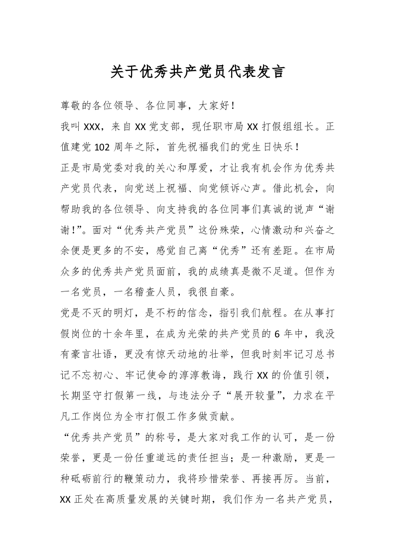 / 关于优秀共产党员代表发言