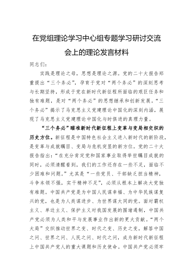 / 在党组理论学习中心组专题学习研讨交流会上的理论发言材料