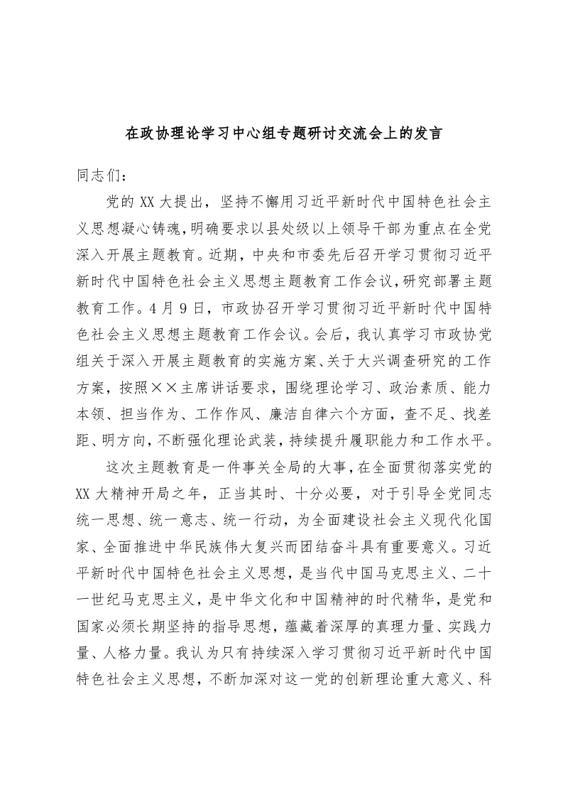 / 在政协理论学习中心组专题研讨交流会上的发言