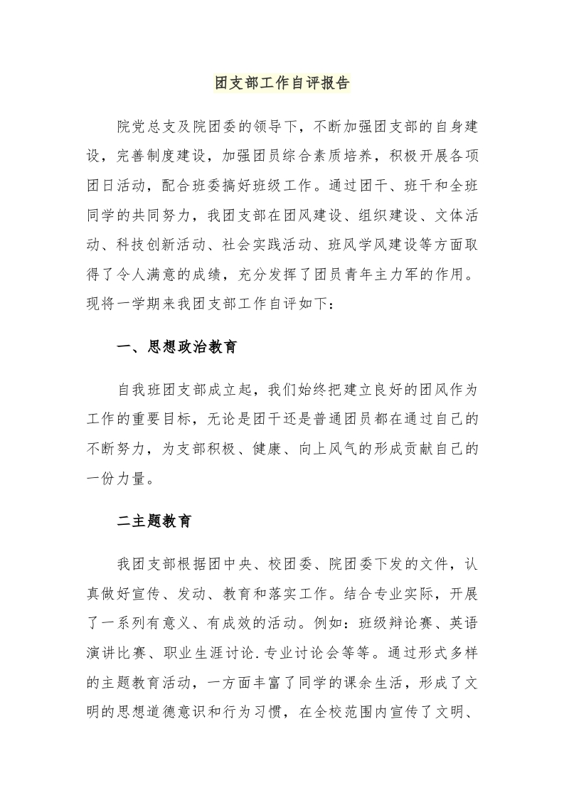 / 团支部工作自评报告