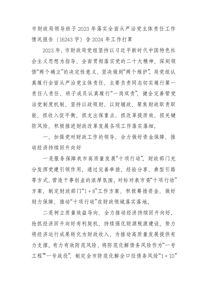 / 市财政局领导班子2023年落实全面从严治党主体责任工作情况报告