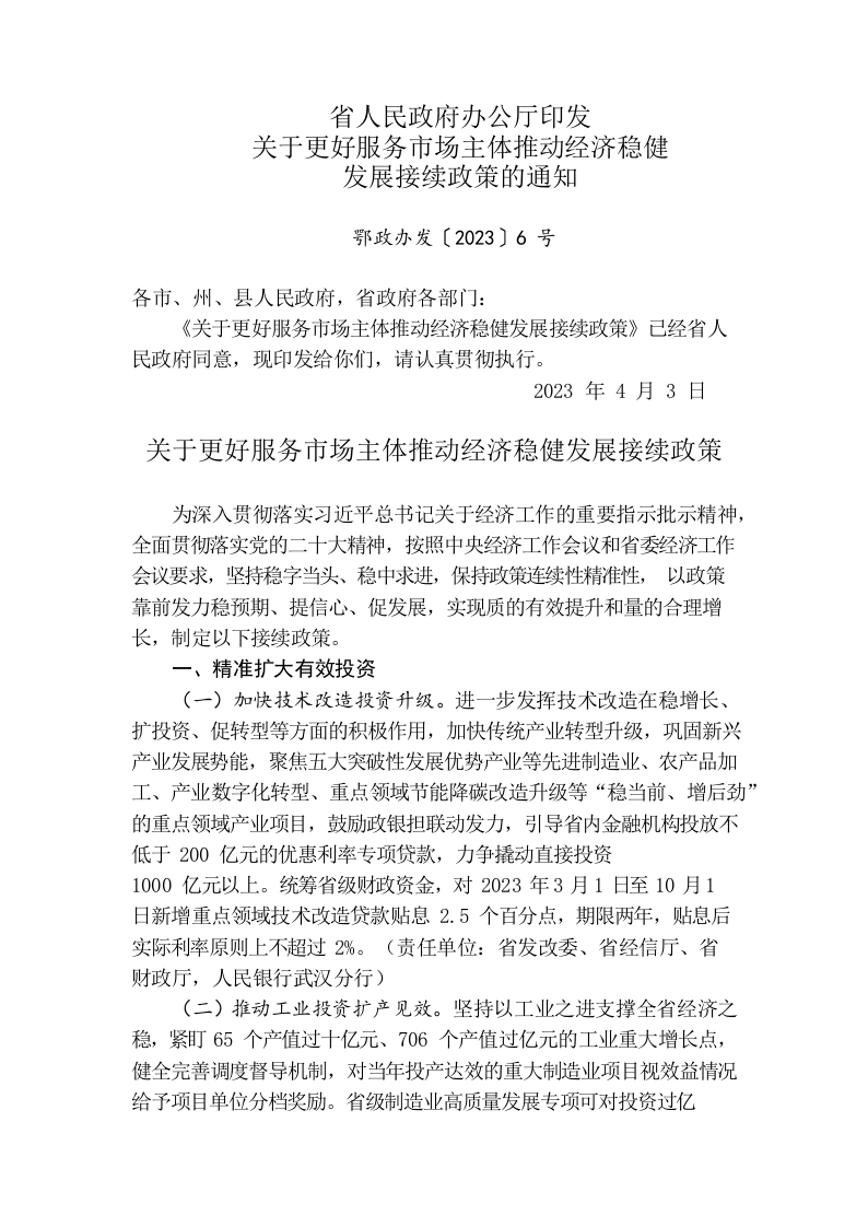 / 关于更好服务市场主体推动经济稳健发展接续政策