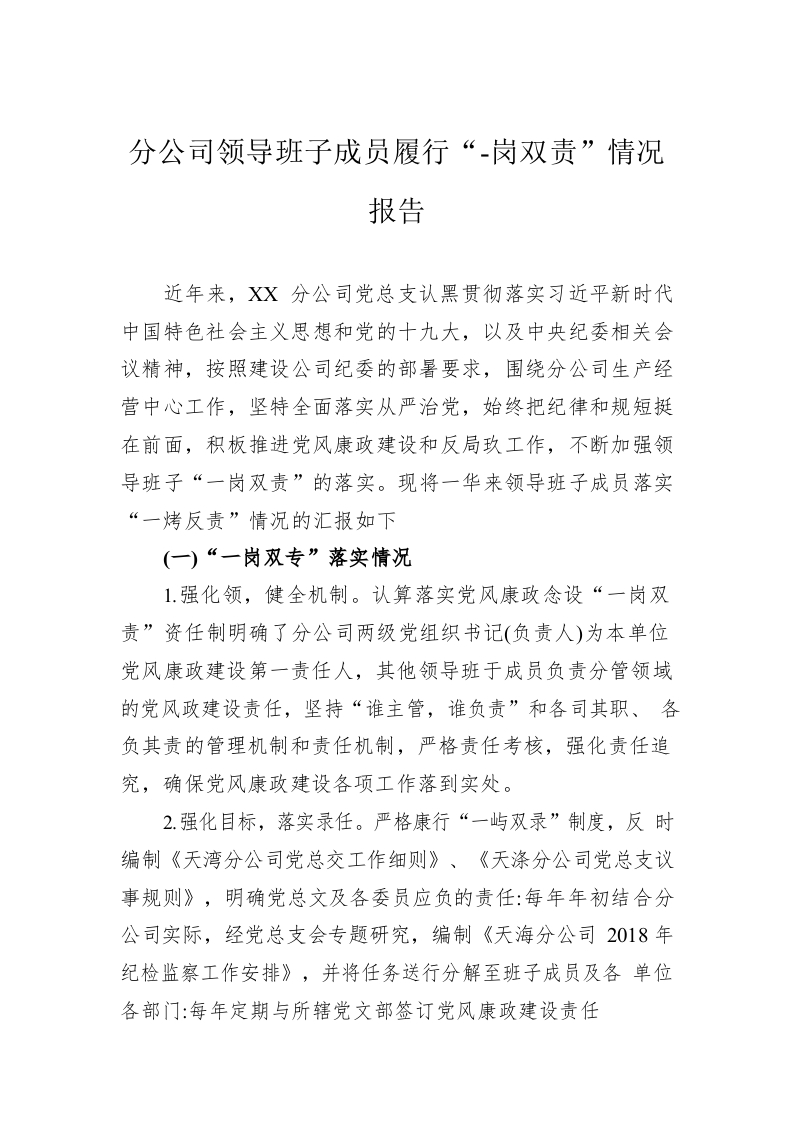 / 分公司领导班子成员履行“-岗双责”情况报告