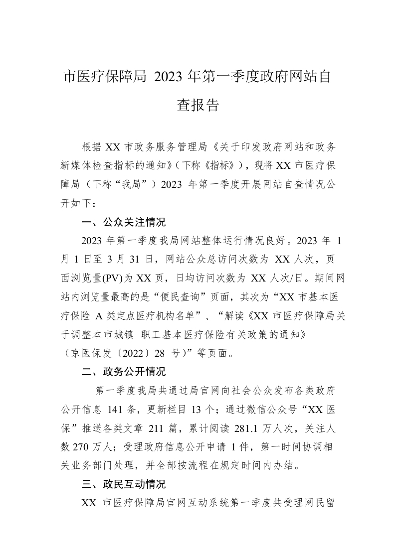 / 市医疗保障局2023年第一季度政府网站自查报告(20230403)