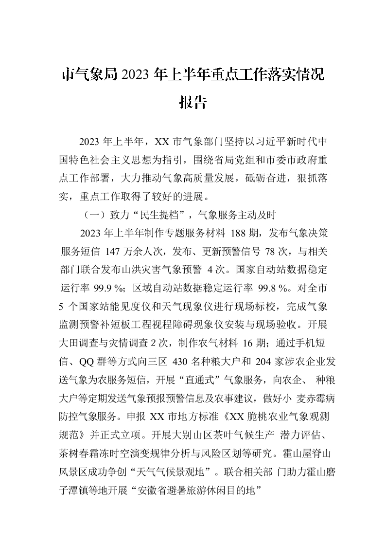 / 市气象局2023年上半年重点工作落实情况报告(20230705)
