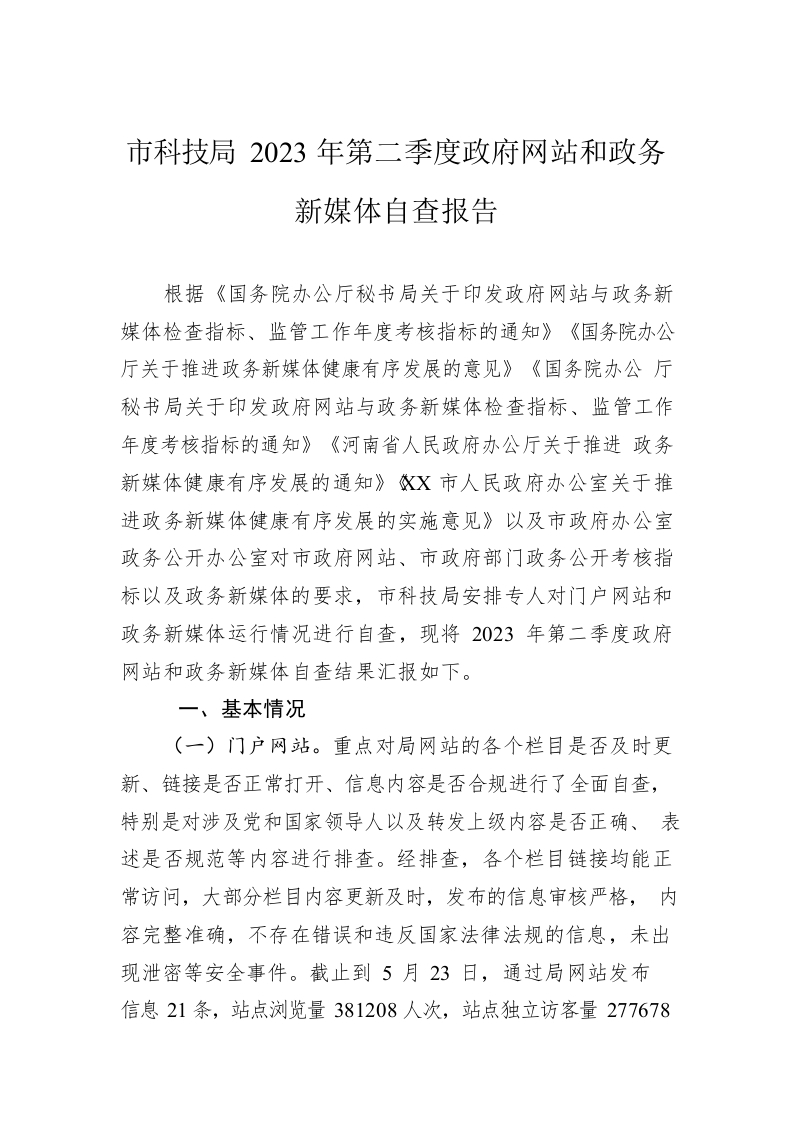 / 市科技局2023年第二季度政府网站和政务新媒体自查报告(20230523)