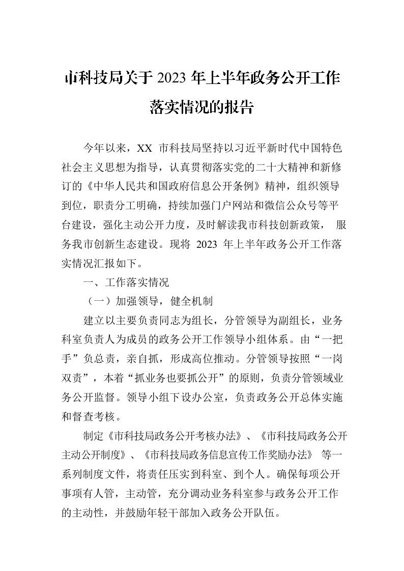 / 市科技局关于2023年上半年政务公开工作落实情况的报告(20230630)