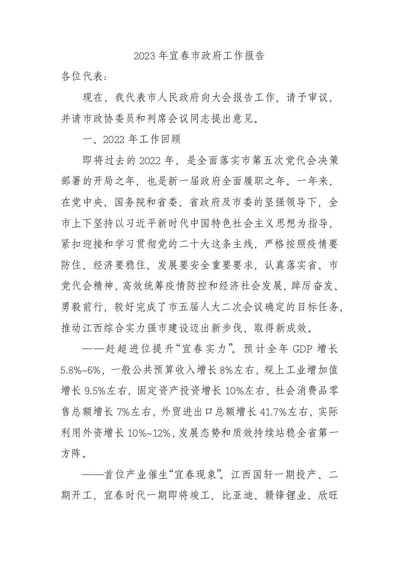 2023年在市政府工作报告重要目标和重点工作任务分工方案