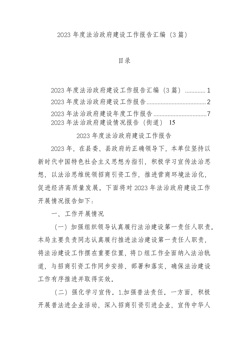 / 2023年度法治政府建设工作报告汇编(3篇)