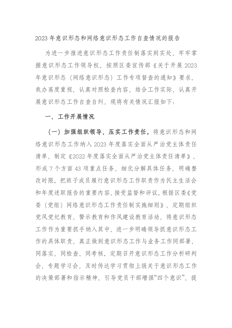 / 2023年意识形态和网络意识形态工作自查情况的报告