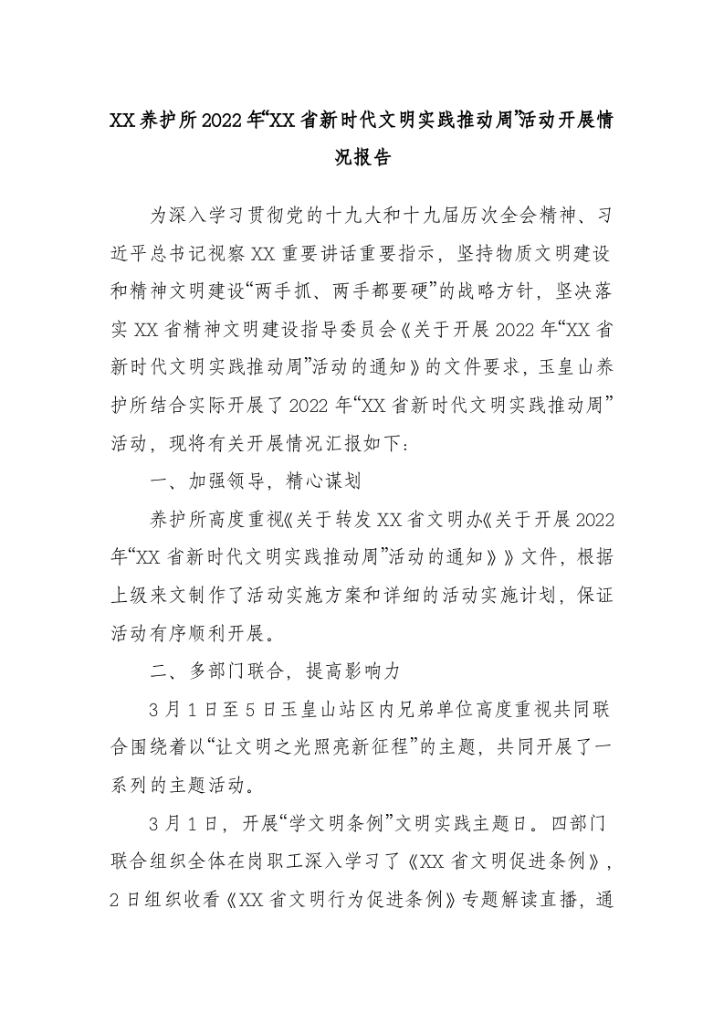 / XX养护所2022年“XX省新时代文明实践推动周”活动开展情况报告
