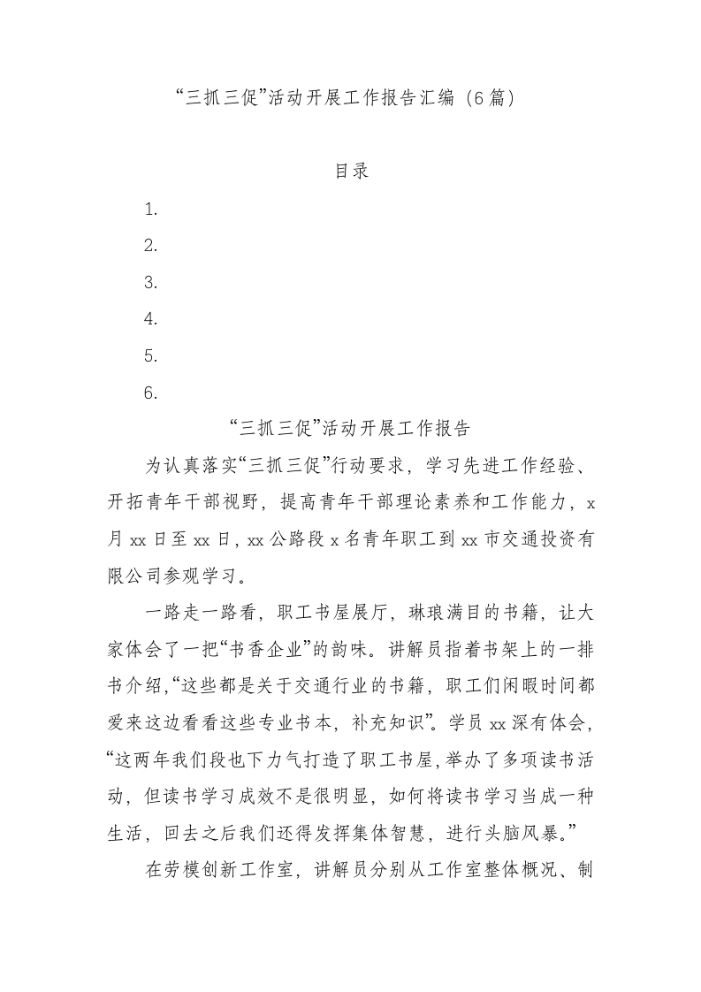 / “三抓三促”活动开展工作报告汇编