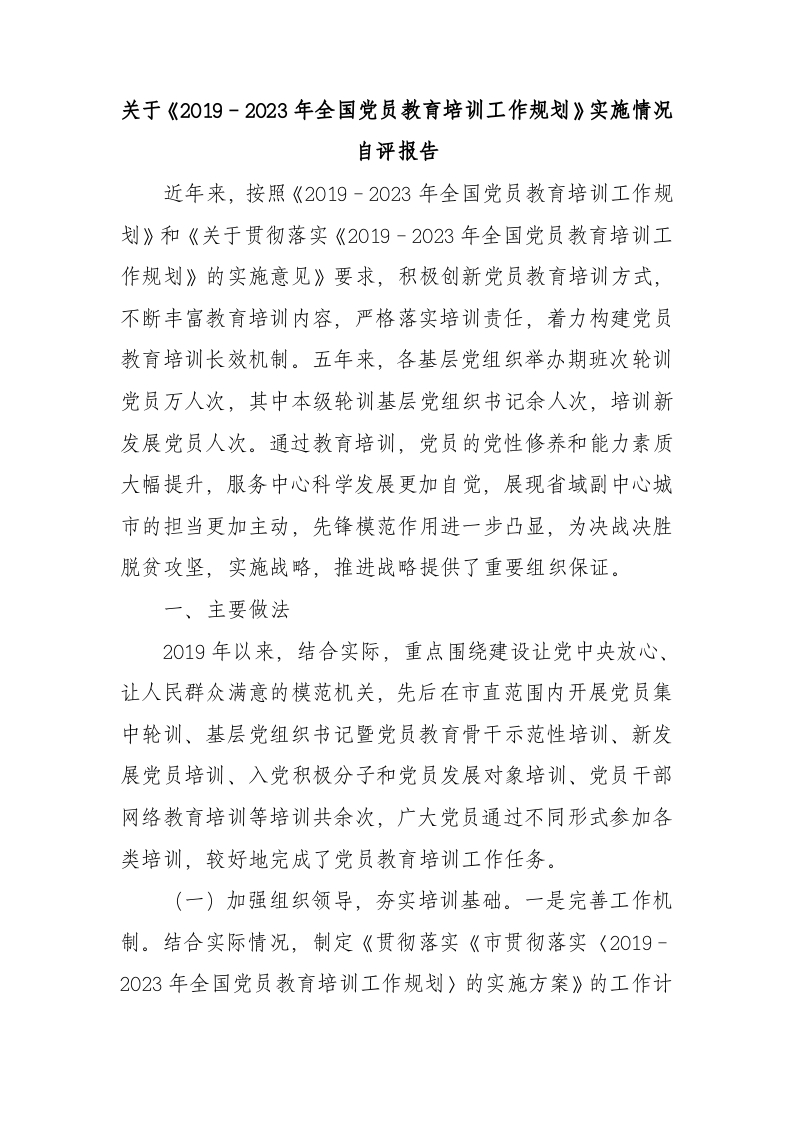 / 《2019-2023年全国党员教育培训工作规划》实施情况自评报告