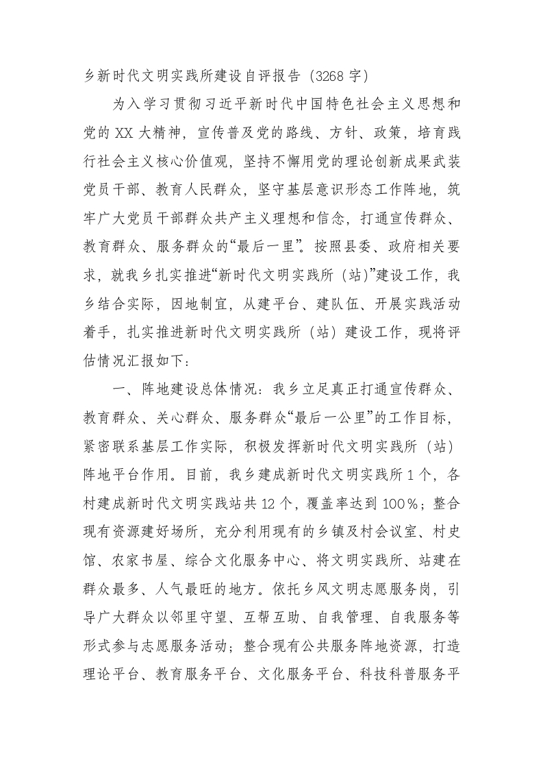 / 乡新时代文明实践所建设自评报告